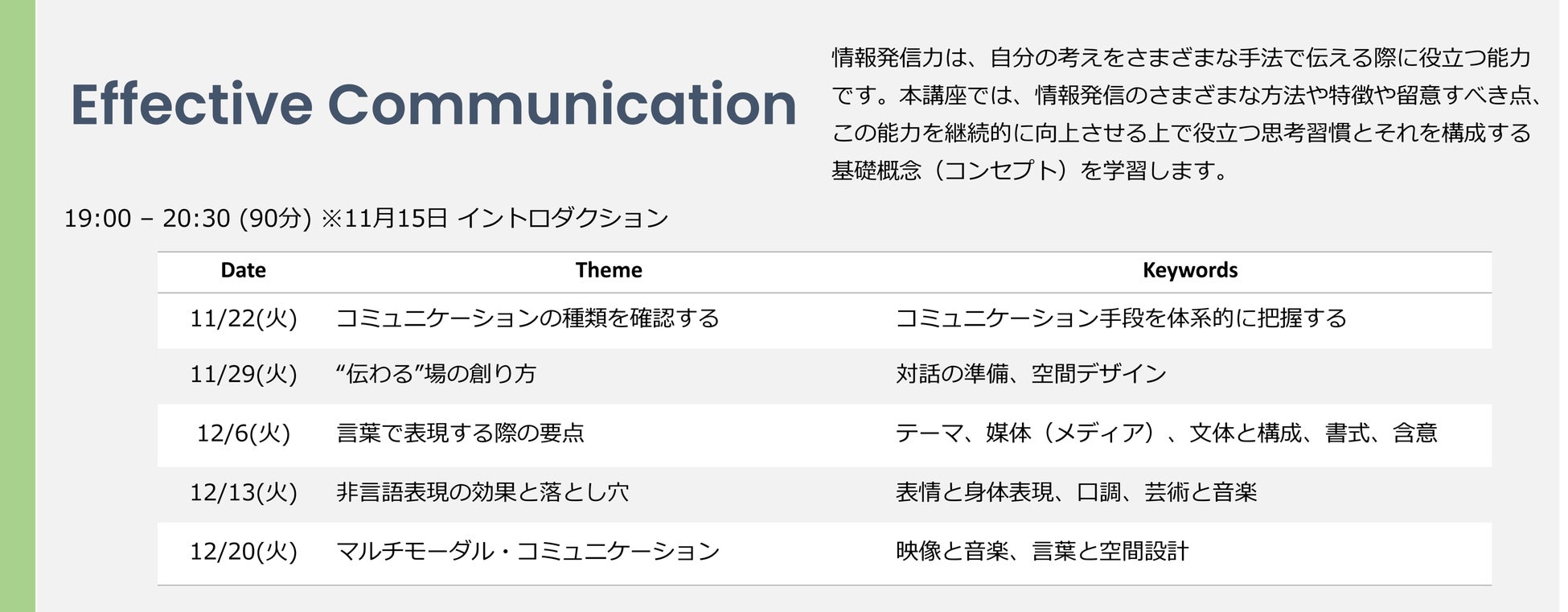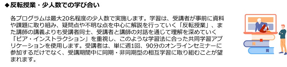 ◆定員: 原則15人~20人程度の小規模クラスで開催いたします。