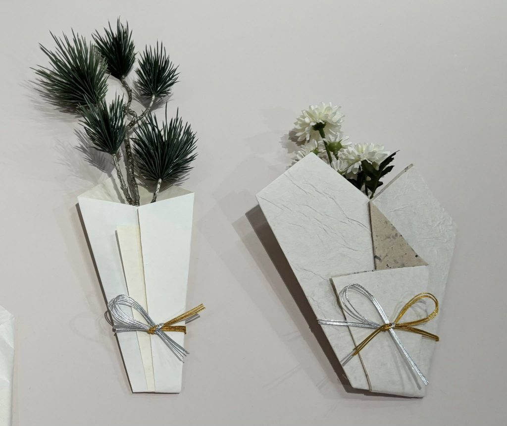 光を和紙で包んだ照明は、まぶしさをやわらげ、空間にぬくもりを溶かし、懐紙や折形は、礼や思いやりをそっと手渡す「包み」の文化を伝えている。