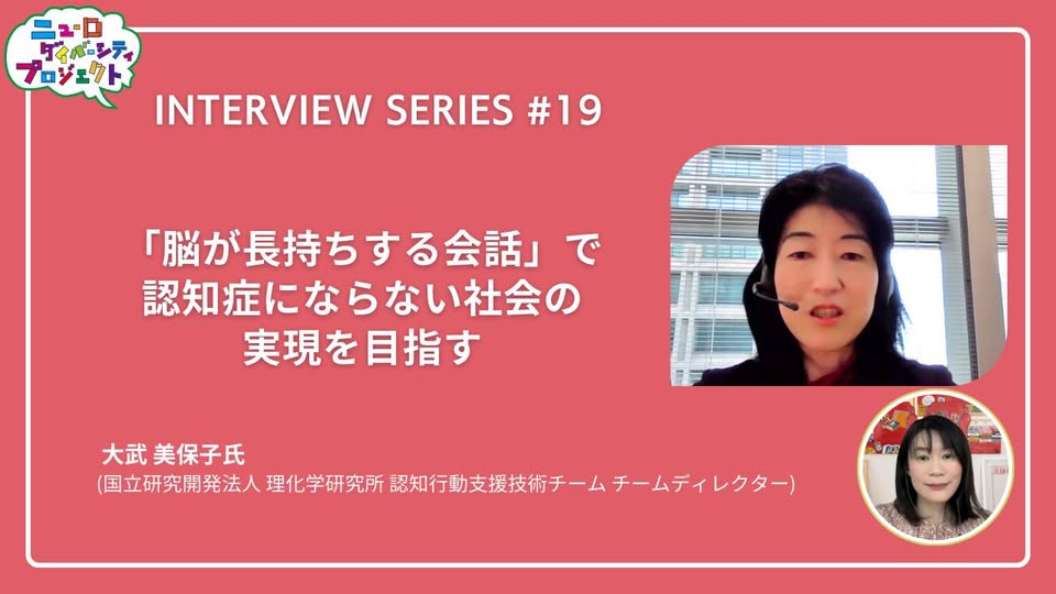 ニューロダイバーシティインタビューシリーズ第19弾は、国立研究開発法人理化学研究所認知行動支援技術チームの取り組み、「脳が長持ちする会話で認知症にならない社会の実現を目指す」です。