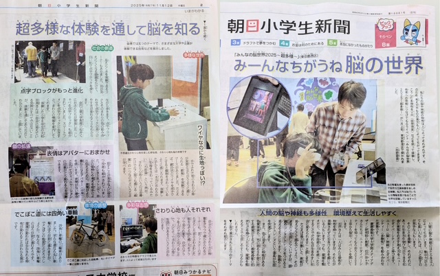 日経新聞では 「Every brain is unique」、朝日小学生新聞では 「みーんなちがうね 脳の世界」 というタイトルで掲載されています。