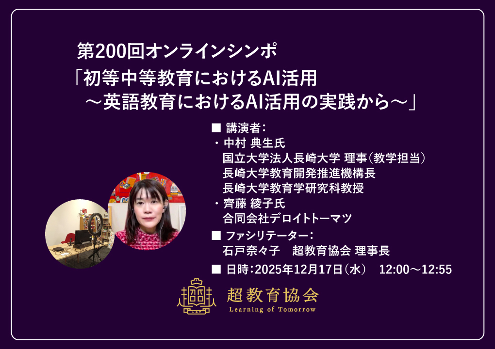 - 【告知】「初等中等教育におけるAI活用~英語教育におけるAI活用の実践から~」