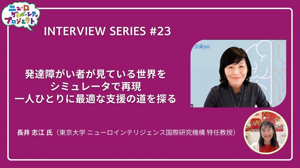 ニューロダイバーシティインタビューシリーズ第23弾は、東京大学ニューロインテリジェンス国際研究機構特任教授の長井志江氏の取り組み、「発達障がい者が見ている世界をシミュレータで再現 一人ひとりに最適な支援の道を探る」です。
