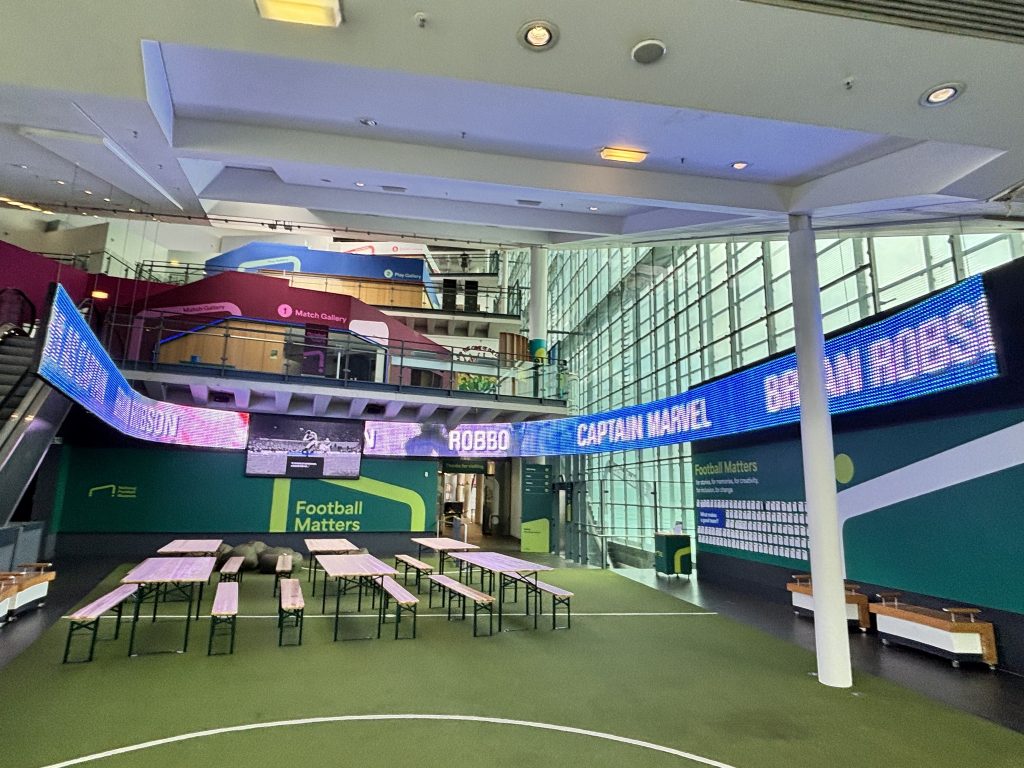 サッカーの歴史から名シーン、ファン文化まで盛りだくさんで、歩いているだけでワクワク。