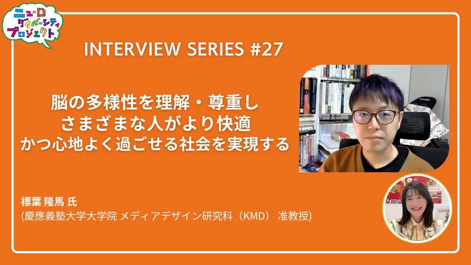 ニューロダイバーシティインタビューシリーズ第27弾は、KMD標葉隆馬氏の取り組み、「脳の多様性を理解・尊重しさまざまな人がより快適かつ心地よく過ごせる社会を実現する」です。
