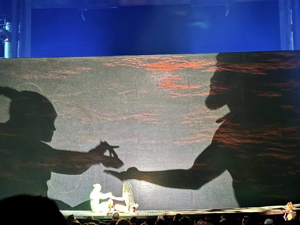 壮大な舞台転換と迫力あるアクションが続くなかで、最も印象に残ったのは、やはり影絵のシーン。